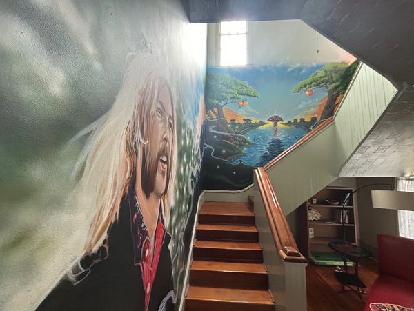 We commissioned local artist, Kevin "Scene" Lewis to paint a mural that wraps around the large stairwell. Kevin's passion and attention to detail are very evident. He has painted many murals, including those at Grant's Lounge and Sweet Eleanor's.